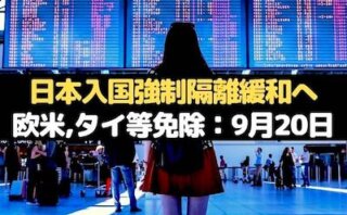 海外在住日本人 ◆日本入国時の強制隔離緩和へ◆欧米,タイ等免除:9月20日