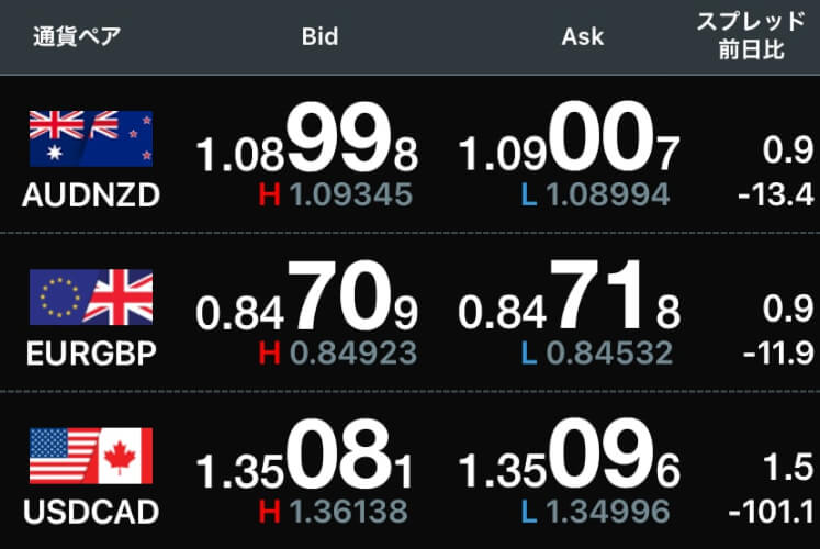 各通貨ペアの市場動向